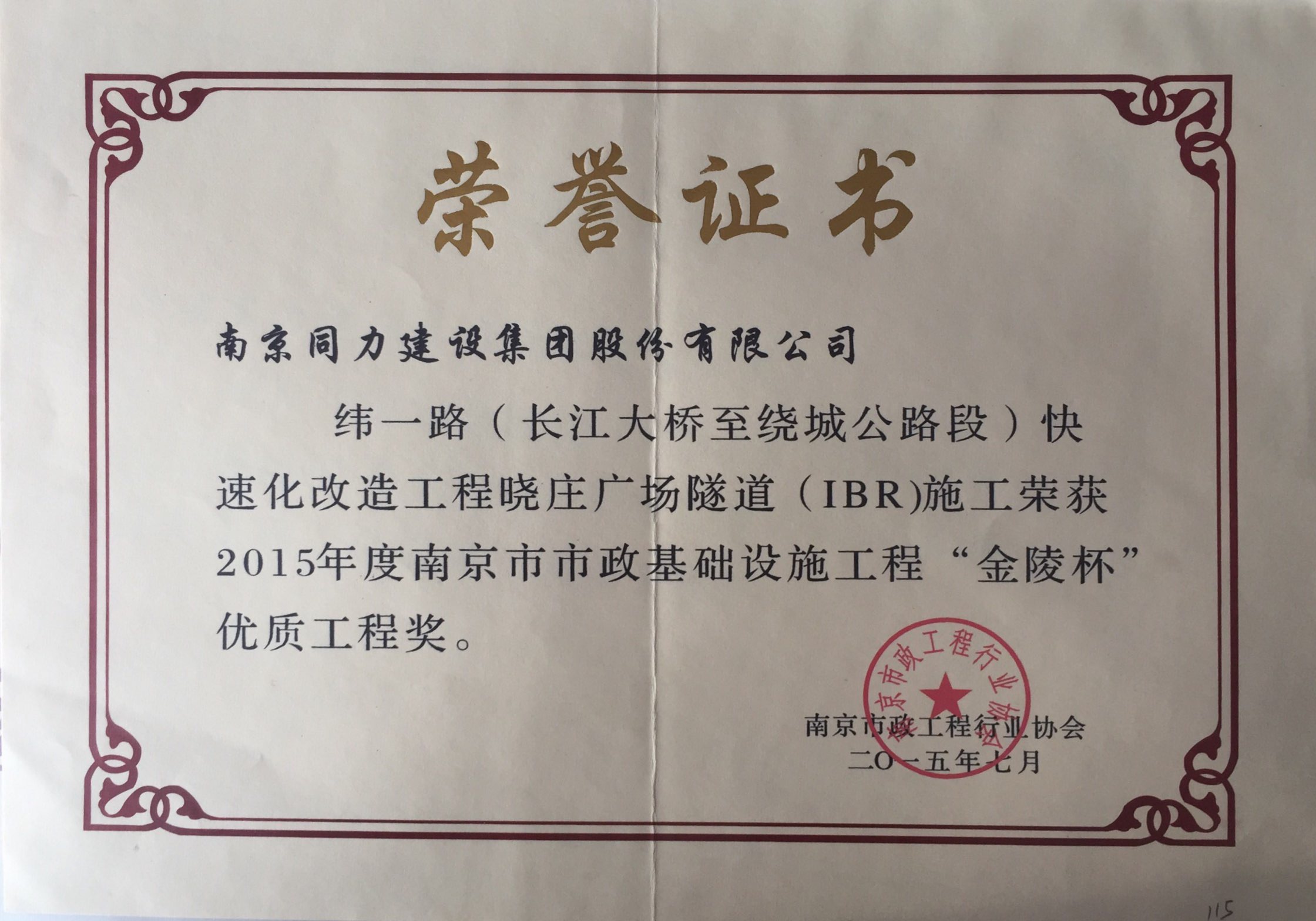 晓庄广场隧道项目工程获得“金陵杯”优质...